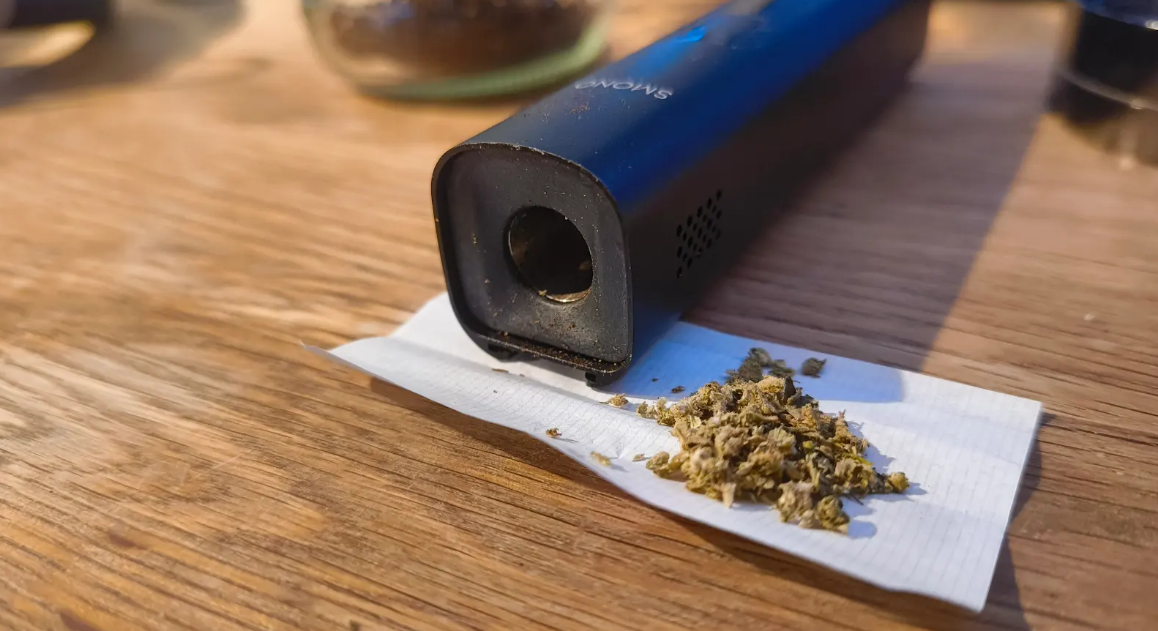 Turns out, vaporising herbs is a cleaner experience than burning them, and there happen to be devices out there that do not burn your material up, but rather heat it up just enough to consume them! There is a big selection out there and you can do research and ask around what friends of you prefer to use, or if they even know of specific devices that they can recommend. I ended up just going to a local headshop and asked what dry herb vapes they had in store. There were insane contraptions sold for over a grand, some heavy duty devices too, and some beginner friendly models, the one I got being an “SMONO” device, in a kind of “pen format” which funnily enough has a recorder like mouthpiece.