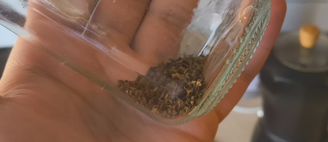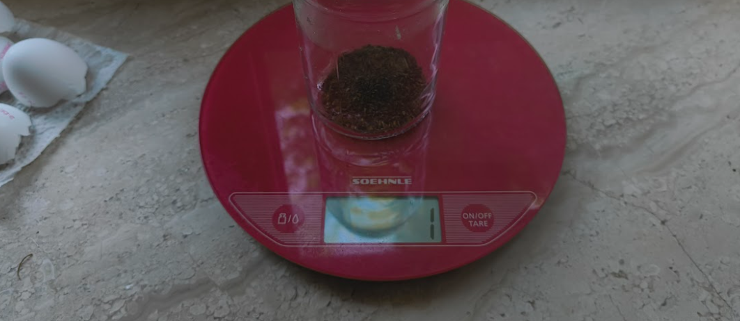 The cool thing about Vapes is that you really use a minimum amount of plant material to get a potent effect, with my vape having a rather small bowl capacity (around 0.3 grams tops but I load it with maybe 0.1 to 0.2 grams of material as I don’t tightly pack it). I don’t have a perfect way of measuring it, however the already vaped material which I have kept in a glass jar, I weighed. Weighing the material on a kitchen scale I have reached 1 gram.
